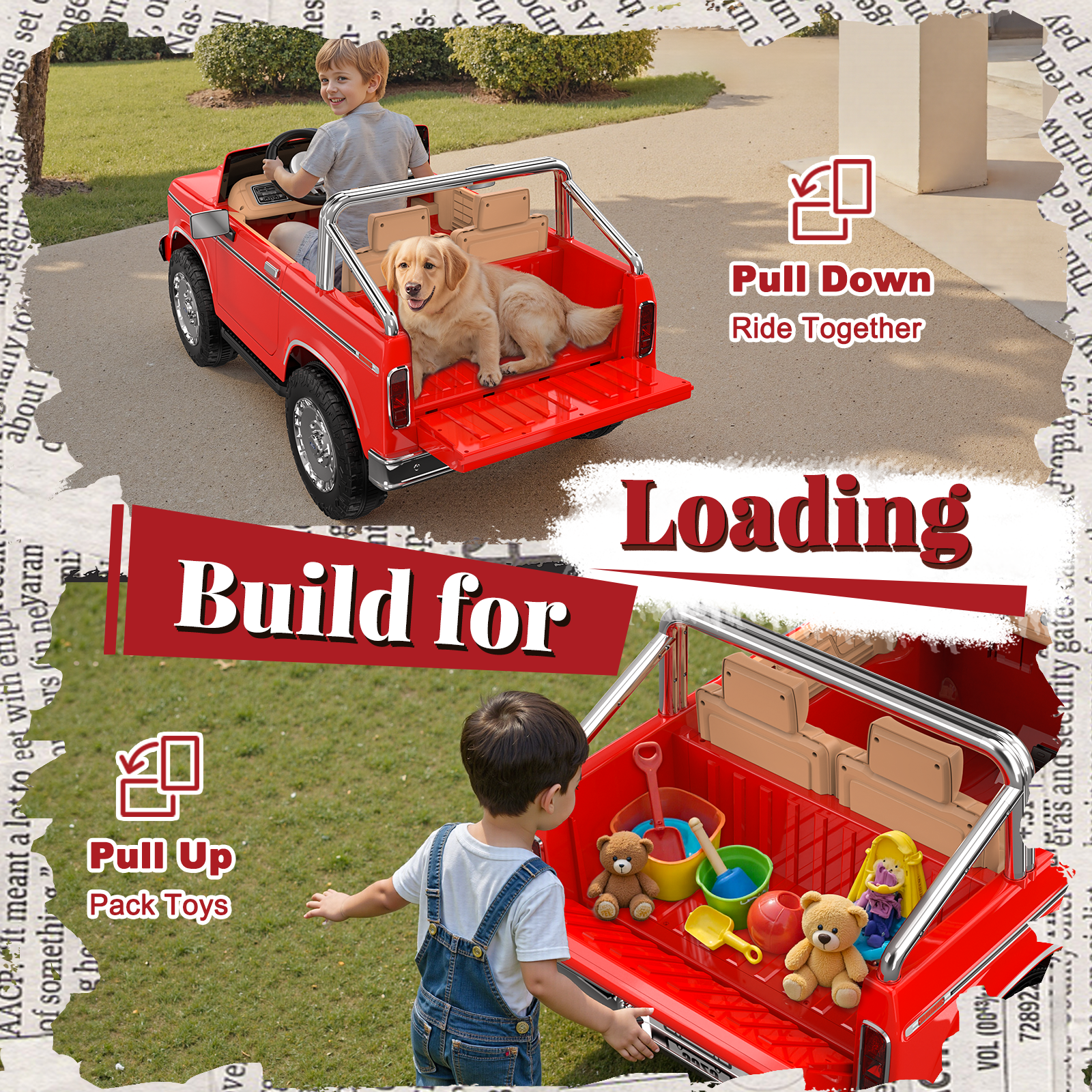 🚩🚩Retro Licensed 1973 Ford F-150 Design: Experience the charm of the TOKTOO 24V Ride on Dump Truck, featuring a retro and nostalgic appearance that captures the essence of the classic 1973 Ford F-150. This striking design is sure to delight both kids and parents alike.